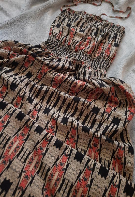 На завязках,на высокую девушку.На резиночке,тянется хорошо.