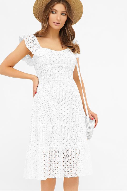 Є наложка 💚 Состав: прошва + батист (100% хлопок) Растяжимость: нет Размерная сетка модели: S, M, L, XL Параметры: длина изделия: 83 см. Для всех размеров. Рост модели на фото: 170 см. Обхваты: 86-65-89. На модели размер S. Легкий белый сарафан – must have для самых горячих деньков. А если он выполнен из перфорированной ткани, то легко станет вещью из категории «Любимый наряд». Модель с полуприталенным силуэтом – это возможность продемонстрировать изящество форм, фасон гармонизирует телосложение любого типа. Оптимальная посадка лифа достигнута за счет отрезной кокетки с вертикальными вытачками и потайной молнии в задней части изделия. Бретели декорированы невесомыми воланами, придающими модели воздушность. Сарафан на лето сшит из прошвы премиум-сегмента. Предусмотрена подкладка из батиста. Нейтральный цвет и демократичный крой предполагают разноплановый выбор обуви и аксессуаров. арт. 58248