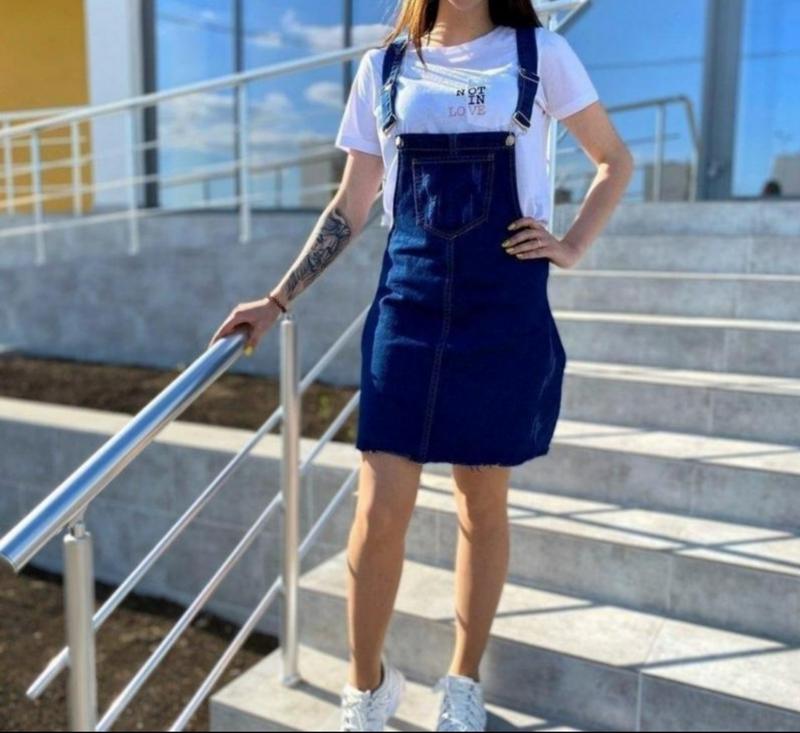 🌿Джинсовий сарафан🌿 ВЕСНА/ЛІТО🌟 ЯКІСТЬ СУПЕР‼️ Склад🌟🌟: Cotton 98% Elastan 2% ✨Розмір: 36, 38 ВИМІРИ🌟: Розмір 36: П. об'єм талії - 43 П. об'єм стегон - 49 Довжина виробу - 63 Розмір 38: П. об'єм талії - 43 П. об'єм стегон - 50 Довжина виробу - 64 Колір: Синій