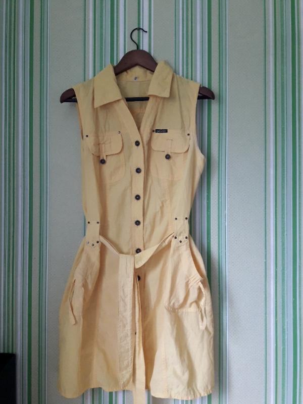 Летний сарафан, ярко- жёлтый/фото не передаёт:(/. Замеры:длина по спине 88, пог 50, пот 37-38. Четыре кармана. Состояние идеальное.