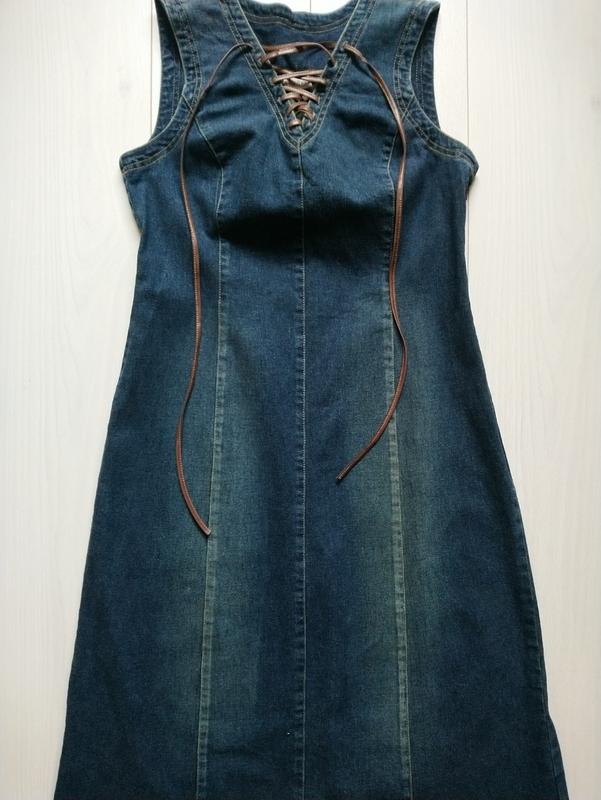 Джинсовий сарафан в дуже хорошому стані Стрейч Джинс тоненький Матеріал 98% котон і 2 еластан Шнурівку можна вийняти Розмір UK 14 З боку на замочку Довжина від плеча 123 см В плечах 36 см Півобсяг грудей 46 см і тягнеться до 56 см Півобсяг пояса 41 см і тягнеться Півобсяг бедер 53 см і тягнеться