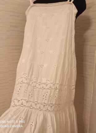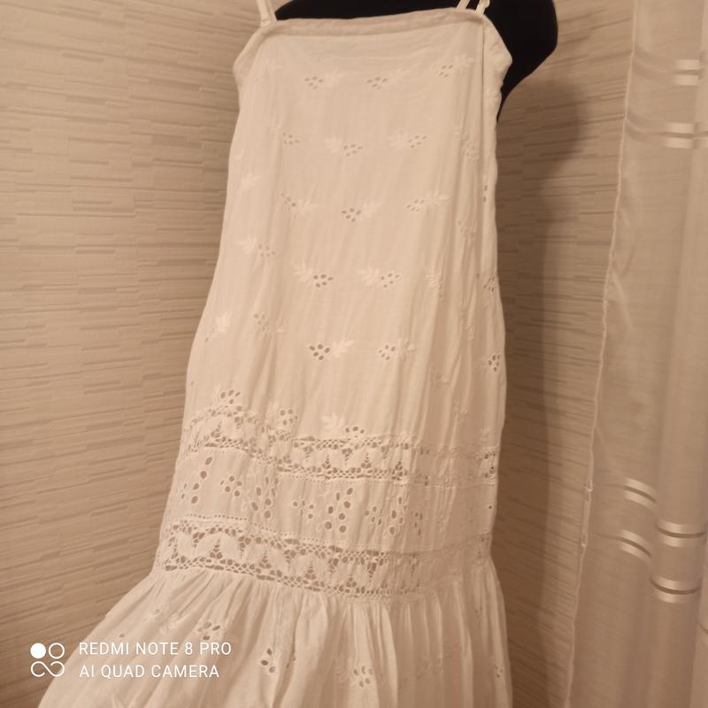 Шикарный летний сарафан, оригинал. Тонкий хлопок, с подкладкой. На съёмных брителях. Покупала, когда бюст был где-то 75в. На больше будет мал. На меньше - можно будет носить и без брителей. Просто восхитительный, одевался считанные разы, в отличном состоянии. Бирку с размером и составом срезала, но это S или xs. И точно хлопок без примесей, не тянется. На манекен 88*70*92 не налез в плечах. Сзади есть резинка, но она так не тянется. Мне уже мал.