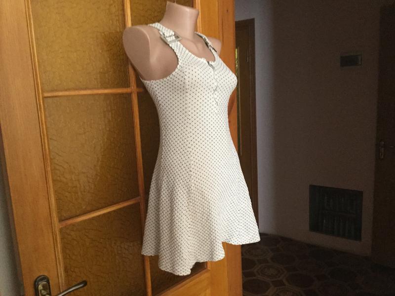 Очень интересная граффированая ткань. ПОГ-38 см. Длина от плеча - 75 см. Спереди на молнии. Немного тянется. Пряжки пластмассовые. Есть маленькое пятнышко. При носки не видно. Отбеливается.