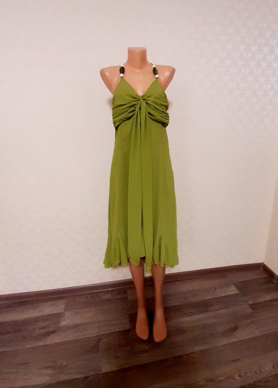🌺Красивый летний сарафан Vipart в оливковом цвете с интересным декором на бретельках 🌺 Снизу атласный подклад. Сбоку потайная молния . Длина миди. Размер:42 (наш 48) Замеры: ПОГ-48 ПОТ-44 ПОБ-55 Длина изделия-123см Состав:95% polly, 5% soie Производство:Франция ‼️Цена сильно снижена-на ткани есть маленький фабричный брак-точки (смотрите последнее фото)
