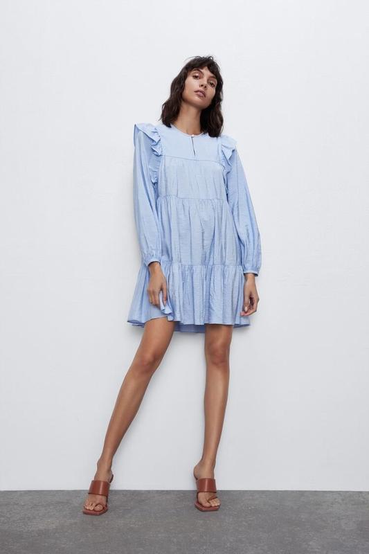 ⭐⭐НЕРЕАЛЬНО ТОПОВАЯ МОДЕЛЬ ОТ ZARA ⭐⭐ ‼️Платье с круглым вырезом, разрез на шее с пуговицей. Длинные рукава с манжетами. Обработка оборками Ременная ткань, отличное качество 💯 ▪️Размер: L (подойдет м-л) ▪️Цвет: голубой ▪️Ткань: вискоза 🗞Цена: 350 грн ✏Замеры: Длина: 86 см ПОГ: 55 см ПОТ: 54 см