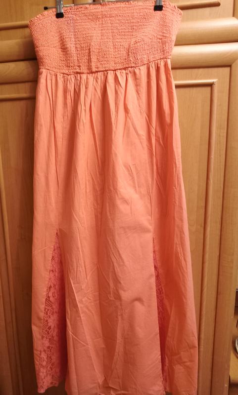 Сарафан без бретельок.Резика тримає добре є підкладка.