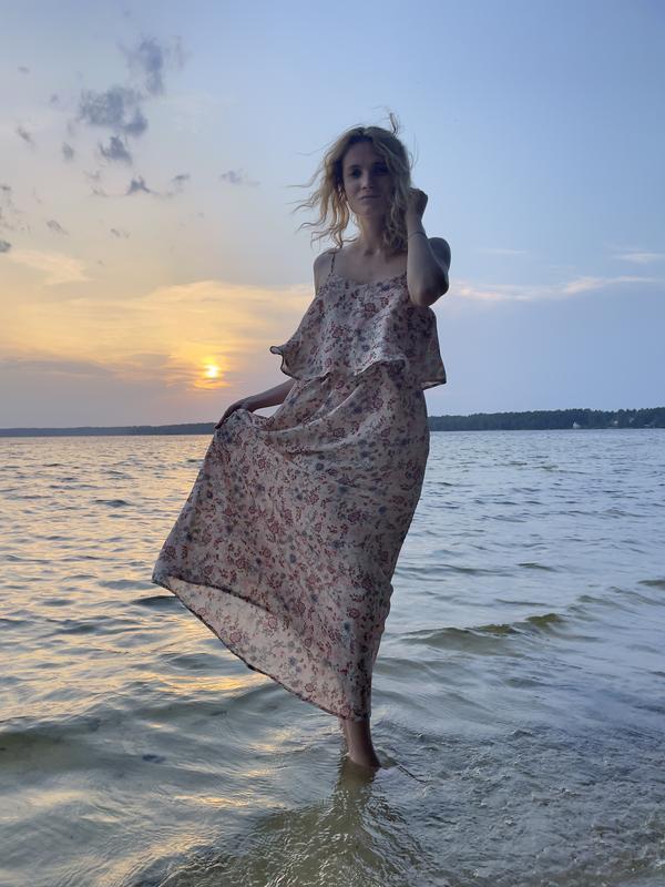 нежный сарафан Stradivarius, легкий шифон, приятный принт. В идеальном состоянии, длина 142, пог 41см.