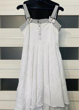 Шикарный лёгкий сарафан французского бренда Fille des Sables. Красивый интересный сарафан, топик на подтяжках, декоративные пуговицы. Юбка имеет несколько ярусов, есть подъюбник. Размер 38