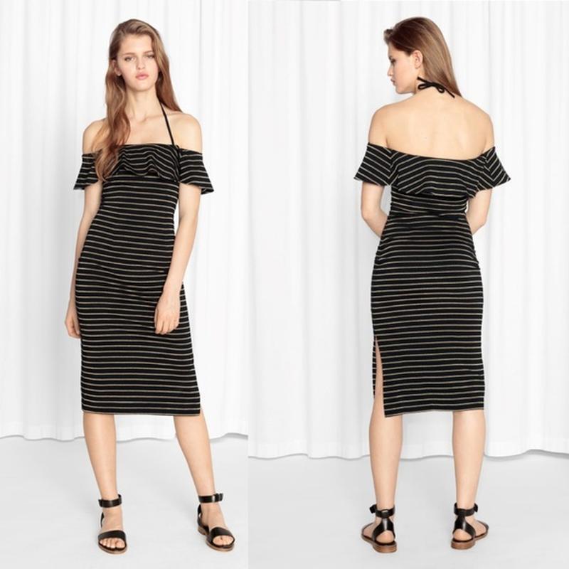 Трикотажное платье миди с открытыми плечами и оборками & other stories