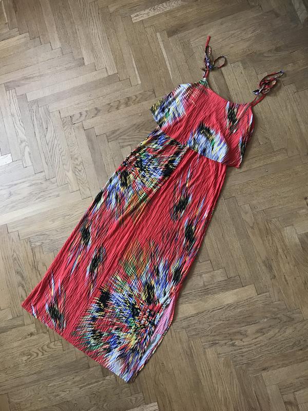 Сарафан в отличном состоянии, лёгкий, длина по спинке 122 см, по бокам есть разрезы.ПОГ-45 см, ПОТ-32 см по резинке