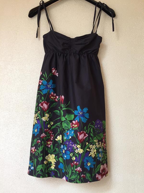 Розмір S Довжина 89 см Коротка сукня з квітковим принтом і тонкими регульованими бретелями. Жата еластична тканина на спині