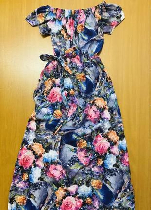 Сарафан в пол может украсить любой вечер ! Нежная и легкая ткань не пропускает жару , в сарафане весьма комфортно. Сверху на резинке , пояс тоже выполнен с резинкой для удобства в носке. Имеется в комплекте поясок, выполненный из такого же материала . Замеры : плечи 40 см, ПОГ 40 см ( тянется больше) , ПОТ 35 см ( резинка ), длина 130 см.