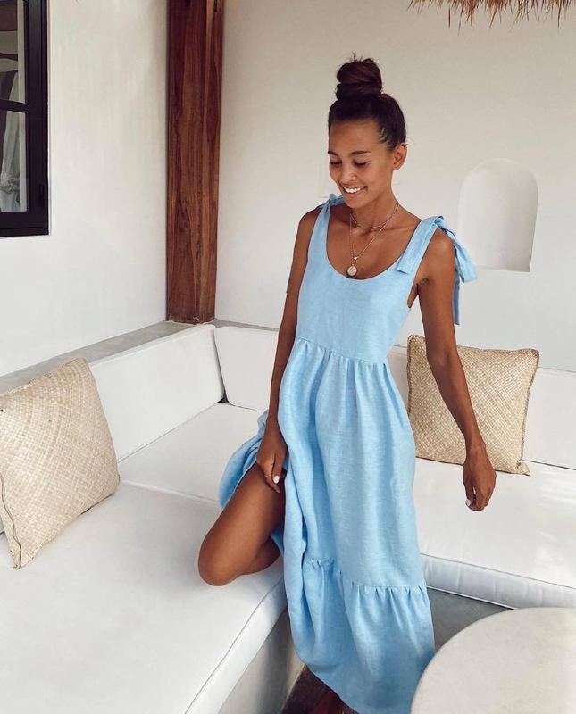 В наличии😍 Добавлены новые цвета: белый, бежевый🥰 Сарафан Мод. av 082 Цвета: пудра, мята, голубой, белый, бежевый Размеры: 42-44, 46-48, 50-52 Ткань: лён (мягкий, приятный на ощупь) Идеальный вариант для знойного лета и весны🤩 Невесомая воздушная ткань и яркие оттенки🥰 Бретели регулируются завязкой.