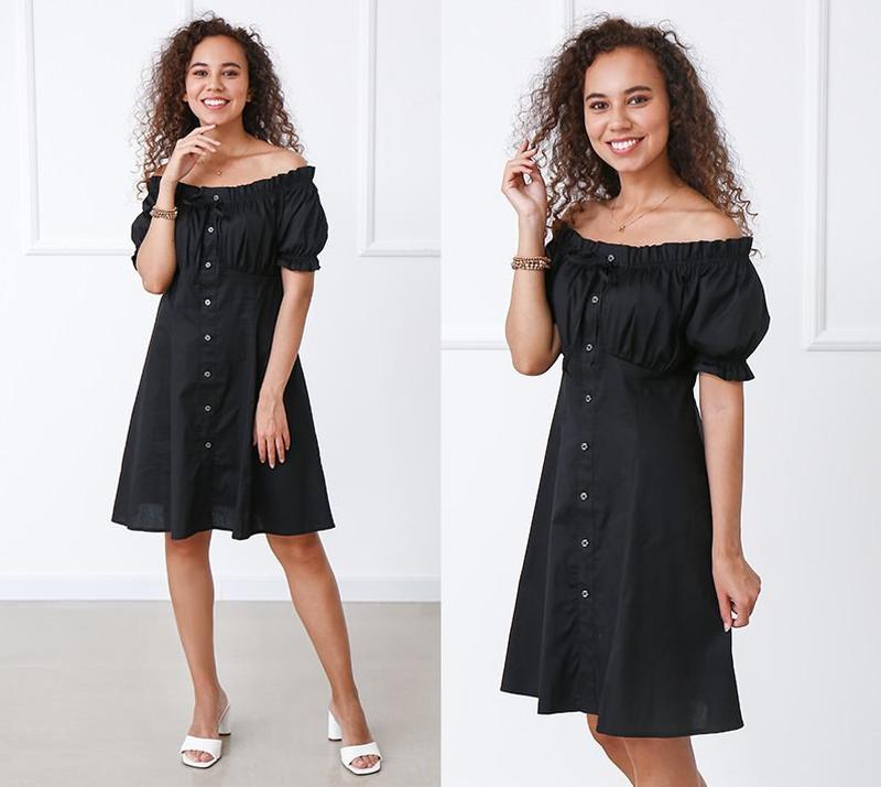 ⭐ НОВИНКА ⭐ Нежное женское платье с открытыми плечами ⠀ Материал: коттон ⠀ Замеры: длина по спинке: 83 см, длина рукава: 24 см ⠀ Размеры: 42-44, 46-48 ⠀ Цвета: черный, белый ___________________________ Цена🏷: 395 UAH ⠀