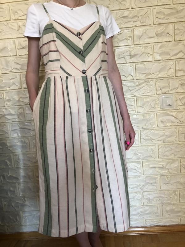 Сарафан в хорошем качестве в идеальном состоянии 100%. Длинна со шлейками 113. Шлейки регулируется. Грудь 98-100. Талия 86.
