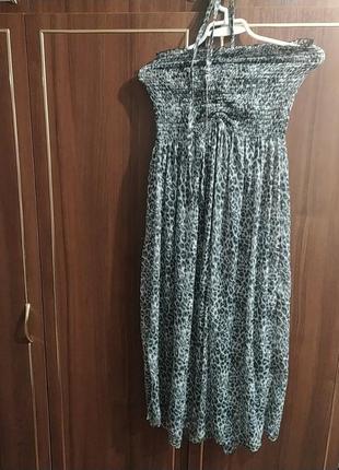 Лёгкий , стильный, можно носить как юбку и как сарафан ,резинка широкая ,хорошо держит грудь ,в чемодане ноль веса