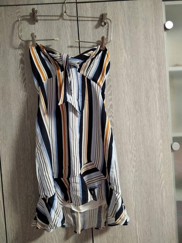 Сарафан полосатый Olivaceous , в сине-голубую полоску без бритель на подкладке.Размер С.Ширина по груди 38 см,талия 33 см,бедра 45 см.Длина от верха ткани спереди 61 см,сзади 68 см цена 150 грн