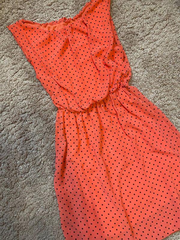 Красива літня сукня в горошок в яскравому кольорі, є рідкладка Тканина - шифон, легка, не парить, приємна до тіла Талія на резинці, є шлейки для ремінця довжина - 86 см пот - 26 см пог - 42 см