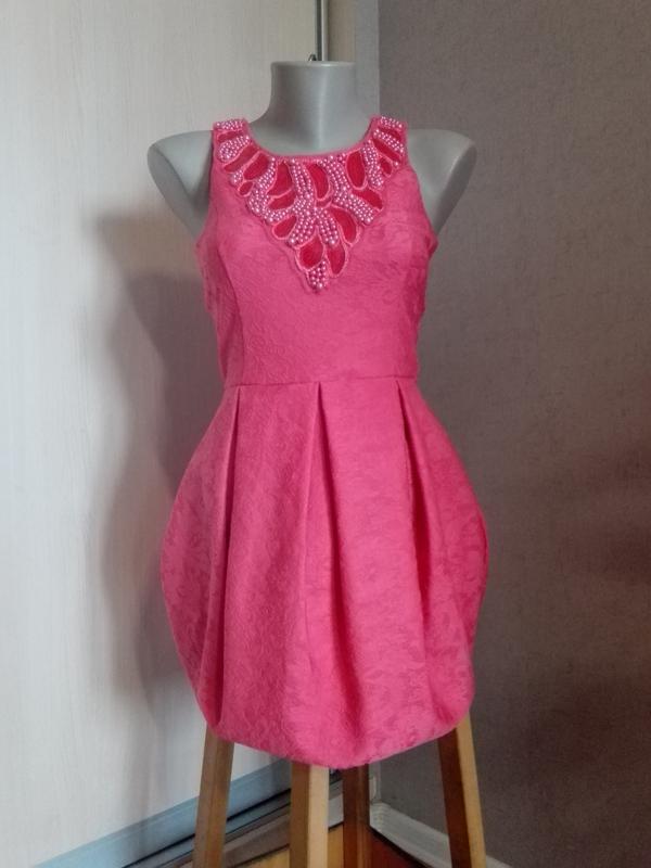 Нарядное коралловое платье-сарафан.С красивой отделкой по груди.