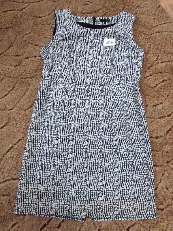 Замеры : длина по спинке 88 - длина молнии 50 - плечо 7 - ширина между подмышками сзади 52 - шир между подм спереди 56 - ПОТ 43 - ПОБ 54 - глубина выреза декольте 12 - длина шлицы 18. Состояние идеальное. Очень красивый качественный сарафан из плотной ткани на подкладке. В черно- белых тонах. Выглядит очень эффектно. Сзади молния до линии бедер. Дефект - по линии проймы обрезана деталь "крылышки", обработка края непрофессиональная, нуждается в переделке.