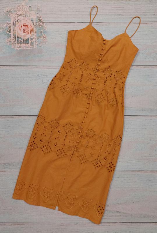 Сарафан/платье миди Primark р. 6/34/XS, впереди по всей длине застегивается на пуговичках, сбоку на потайной молнии, на подкладке, сзади вырез на спинке и красивый бант, натуральная ткань. ПОГ 39 cм ПОТ 35 см ПОБ 48 СМ