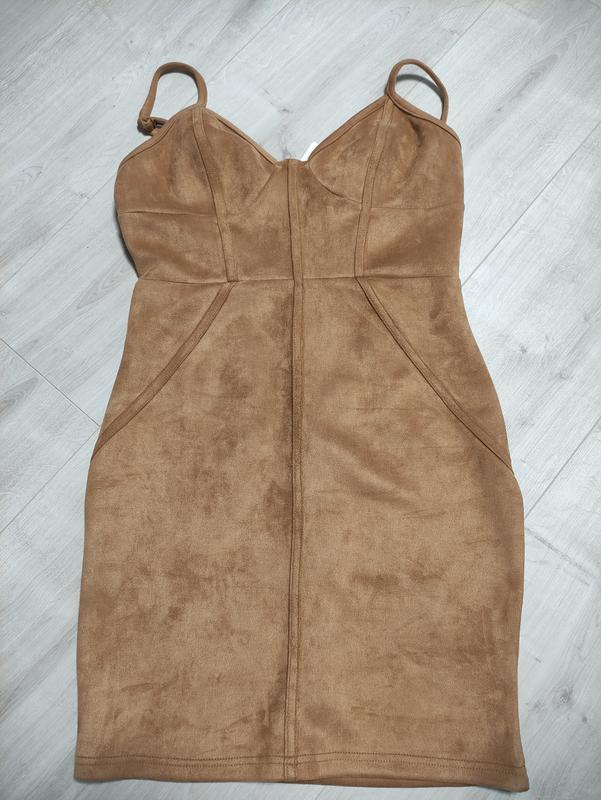 Новий замшевий сарафан з приємної на дотик тканини.Довжина 83см +шлейки регулюються, ширина в грудях 39 см і тягнеться,в поясі 36 см і тягнеться