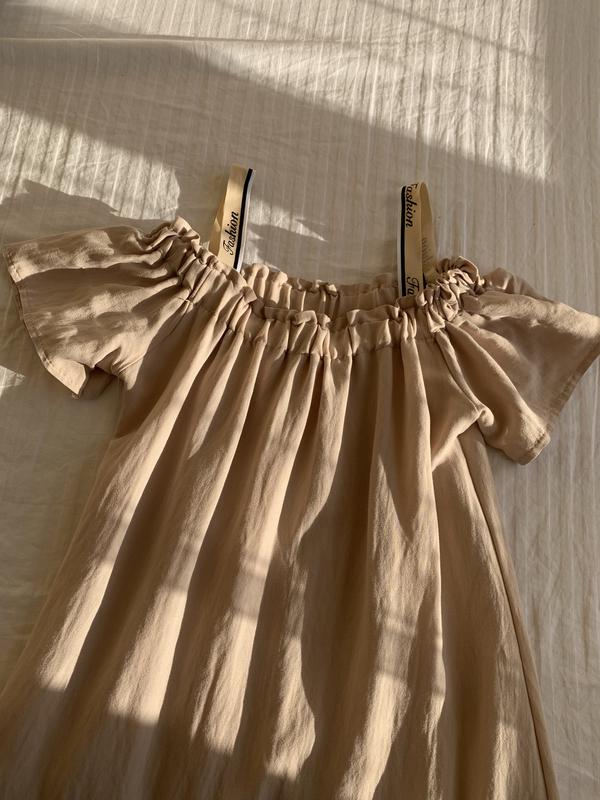Літня сукня-сарафан, (сукня опускається на плечі) зручного і гарного пошиву, не парить. Тканина проста. В ідеальному стані. Більше фото скину в приват.