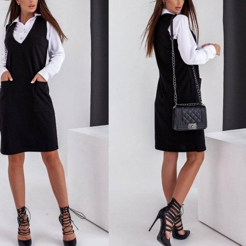 Платье EF-7089 мод: 253 Размеры: 42-44, 44-46 Платья Повседневный сарафан однотон Ткань: креп-давинг Цвета: чёрный, хаки Длина : *сарафана 92 см. *рост модели 165 см. ----------------------------------------