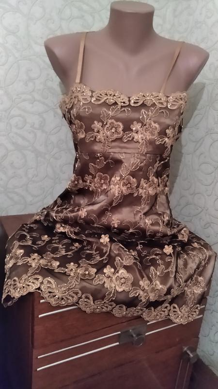 платье нарядное для худенькую и невысокую девушку...очень богато смотрится из-за коричневой ткани сверху вышивка золотыми нитками...застёжка сбоку невидимая молния платье на брителях....все замеры дам в смс и отвечу на любые вопросы... возврата нет перешлю вам любой почтой