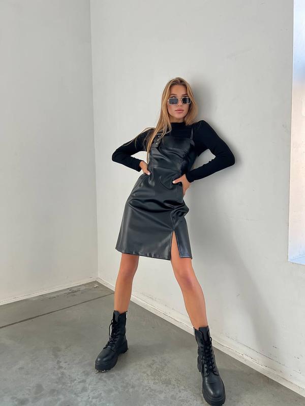 ‼️ Внимание оплата на карту‼️ Костюм 2-ка (сарафан+гольф) Модель: 7094 Цена 680 грн Размеры: 42-44, 46-48 Ткань: сарафан -эко-кожа, гольф - трикотаж рубчик Цвета: чёрный Костюм двойка состоит из сарафана и гольфа! Сарафан застёгивается на змейку, впереди разрез . Гольф на рукавах декорирован пуговицами Смотрите также другие мои объявления