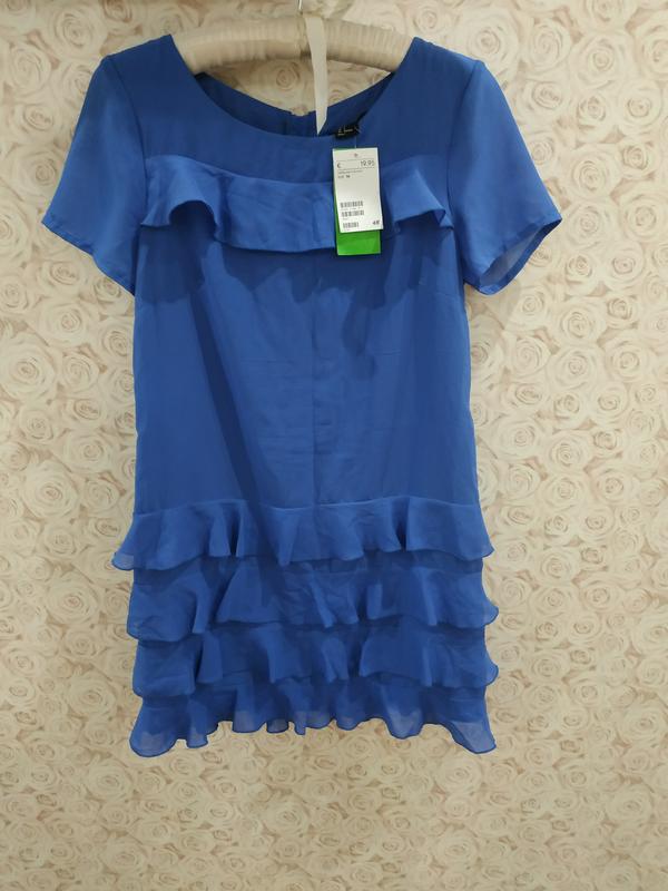 Совершенно новое лёгкое летнее платье H&M с воланами.Очень красивого цвета. Есть небольшой заводский брак в виде полос при носке совершенно незаметно(фото прикрепляю) Размер 36 Плечи 36 Длинна от плеча 77 ПОГ 41
