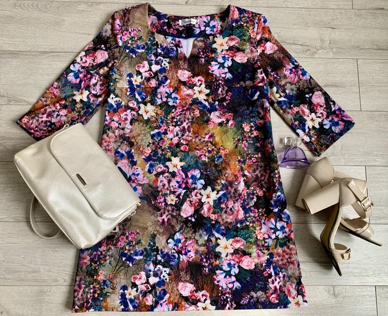 Плаття в квітковий принт, приємна до тіла тканина. Виробник Україна. ПОГ 50, ПОП 42, Довж.рукава 43, Довж. від плеча 83.