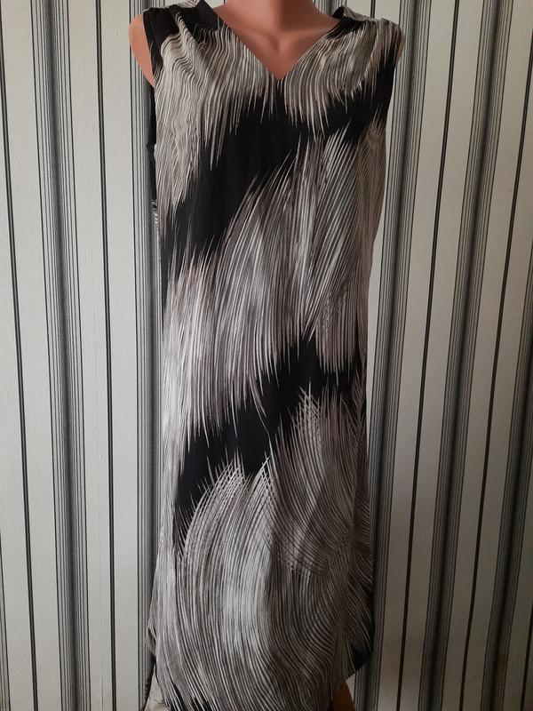 Сарафан на чохлі,гарно лягає по фігурі.Спереду v-виріз, ззаду теж.Застібається на потаємний замок, Не мнеться. Верх-штучний шовк, чохол-нейлон. Реальному покупцю-подарунок.