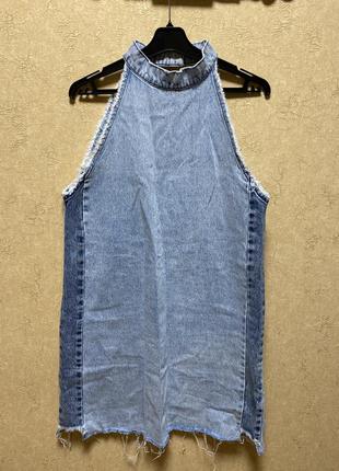 Джинсовый сарафан ,на шее застегивается ,сзади вырез