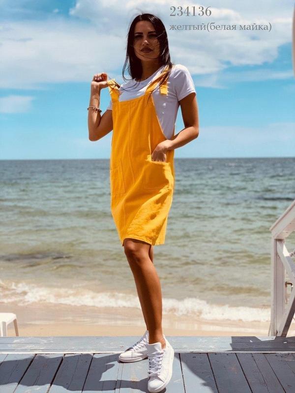 Склад: полегшений деним👌🏻 Розмір: б/р (універсальний 44-46) Заміри: 🌿Футболка: Ширина плечей - 37 см П. обхват грудей - 42 см П. обхват талії - 41 см Довжина виробу - 55 см Довжина рукава - 16 см 🌿Сарафан: П.обхват грудей - 35 П.обхват талії верх - 52 Довжина виробу верх - 70 П.обхват бедер - 53