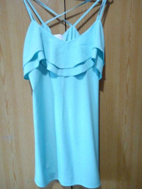 Сарафан с тонкими лямками, на спине на крест. Цвет мята. Длина сарафан с лямками 84 см. Размер 44