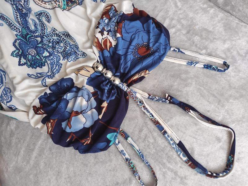 Красивый, летний сарафан Идёт на брительках+ на шеи завязывается На спине на резинке, есть чашечки Размер с-м