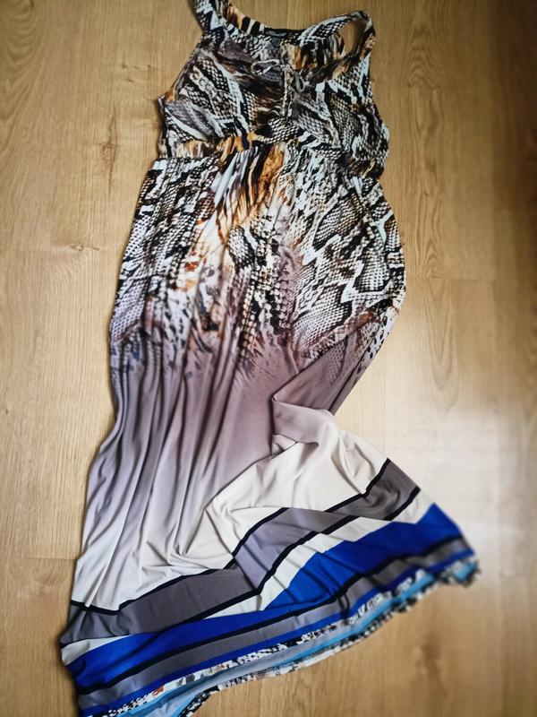 Стильный и трендовый сарафанчик из вискозы, на теле не ощущается. От груди спадает волнками до ног. В жару охлаждает.