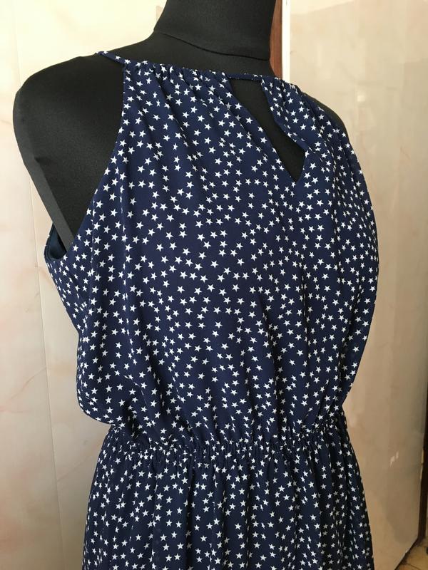 Оригінальний сарафан синього кольору в білі зірочки на тонких бретелях