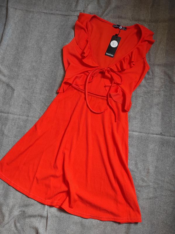 Сарафан boohoo, новый с биркой, размер S. На груди завязки, талия на резинке. Реальный цвет намного спокойнее