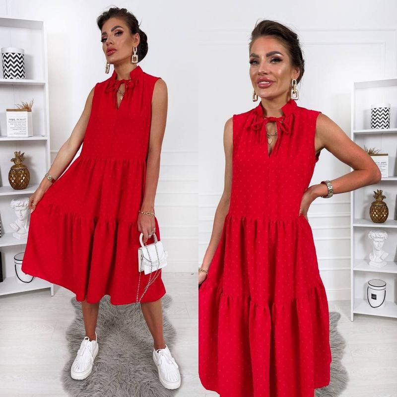 Сарафан арт. pani. 274 Ткань: структурный лен жатка Цвет: красный, белый, черный Размеры: S, M, L, ХЛ Цена 630 грн Свободное расклешенное платье-трапеция выполненное из структурной жатки. Модель миди длины с воланами и фиксаторами на горловине.