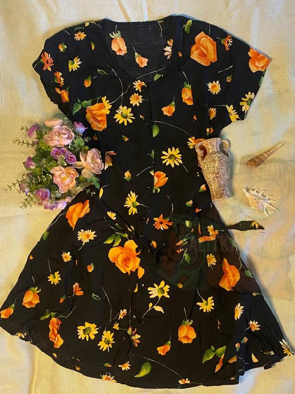 Квітковий сарафан до літа, легкий та неймовірно гарний. Колір: чорно-оранжевий Розмір: S Ціна: 500гривень Матеріал : поліестер 100% За додатковою інформацією та замовленням пишіть в особисті 💞✨
