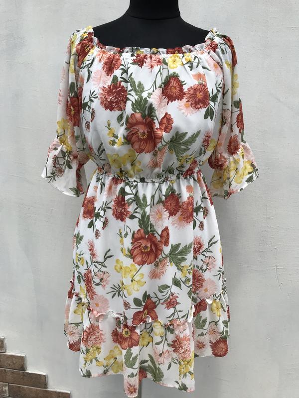 Цветочное платье 👗 ❤️ Носите его через на плечо / или на плечо, удобно носить, развевающееся, платье имеет подкладку, Forever21. ПОГ 52 см ПОТ 38+ резинка ПОБ 60 см Рукав 37 см
