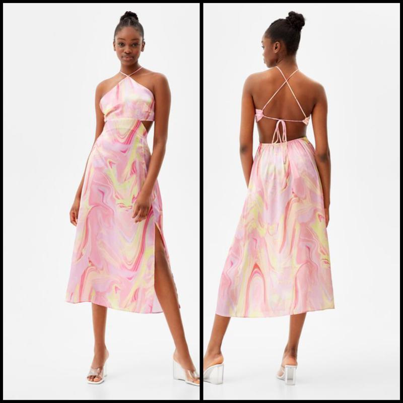 Bershka Іспанія В наявності S атласна тканина, красиво струмує, легка на грудях шифоновы підклад, на спинці на талії резиночка