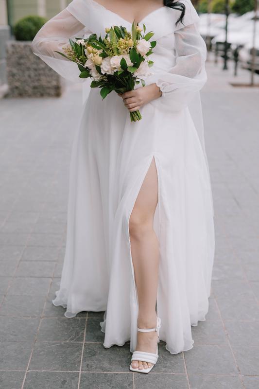 Очень нежное и изящное платье в стиле минимализм, цвет айвори, без корсета , тонкая молния на спине.