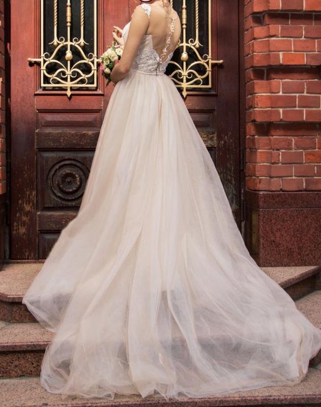 Продам свое невероятно нежное свадебное платье в бежево-белом цвете,размер 42, отличное состояние.Очень удобное и компактное без корсета на спине застегивается на молнию и есть ряд пуговиц.Небольшой шлейф, очень дополняет платье, петелька чтобы его поддерживать.Чохол идет в комплекте.Замеры и детальную информацию по желанию дадам.Отправью Укр или новой почтой.Умный торг уместен.