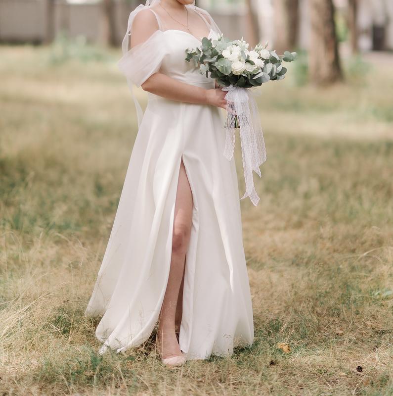 Одягалась один раз , шила під замовлення, розмір 44-46, молочного кольору, з розрізом на нозі, дуже елегантно виглядає 😻