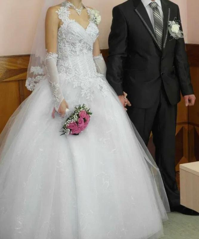 Продам чудову весільну сукню 44-46 розміру та чоловічий костюм італійського виробництва 52-го розміру Umberto loni. В ідеальному стані, не вінчані.