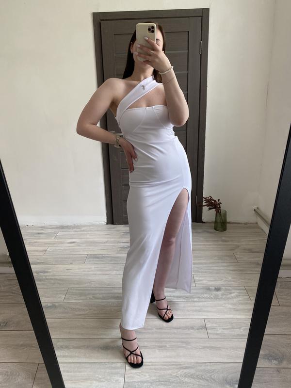 Очень красивое бельевое платье с вырезом Размер С<unk> М Красиво тянется, не просвечивается Длина 129 см Длина выреза 81 см Полуобхват груди 36 см Талии 40 см Бедра 45см (мои настройки 51 см)