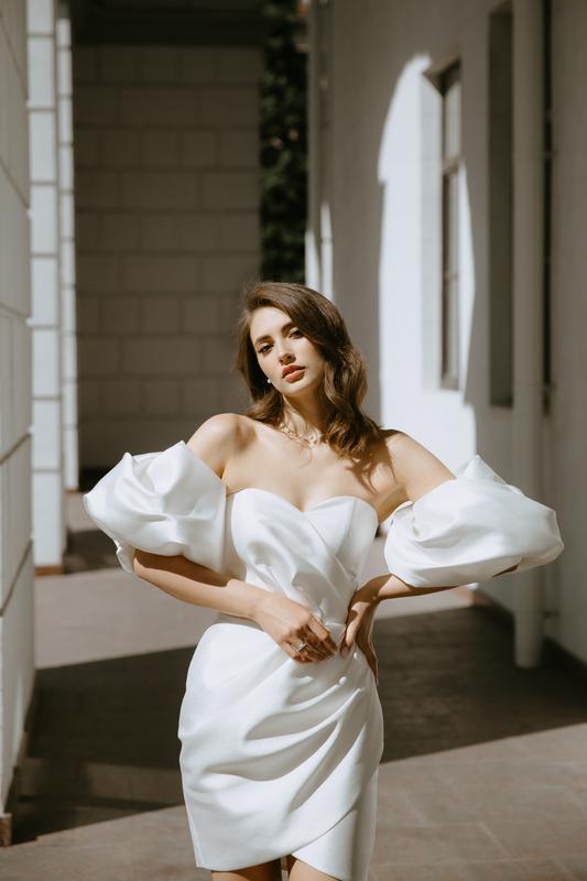 Хотите купить короткое свадебное платье? Оно идеально подойдет для тех, кто хочет выглядеть стильно и оригинально в такой важный день! Не упустите возможность приобрести это платье у нас - оно точно запомнится вашим гостям и оставит вас в восторге!👗✨ Размер S-M ОГ 86 ОТ 64 ОБ 92